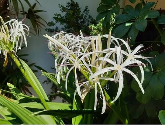 Από έναν μακρύ μίσχο μήκους περίπου 50 εκ. αναπτύσσονται τα άνθη σε ταξιανθία, σε σχήμα χωνιού, σε αποχρώσεις του κόκκινου και πιο σπάνια κίτρινου χρώματος, με ένα ελαφρύ γλυκό άρωμα.
